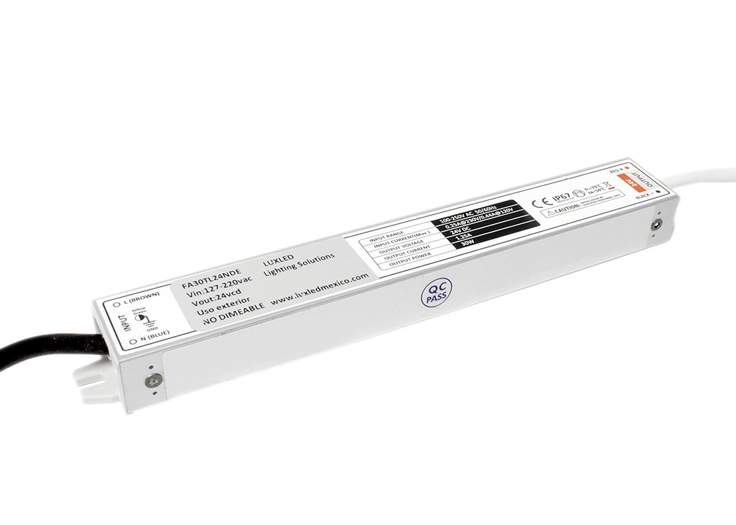 Fuente de alimentación de 30w no dimeable con cuerpo metálico.